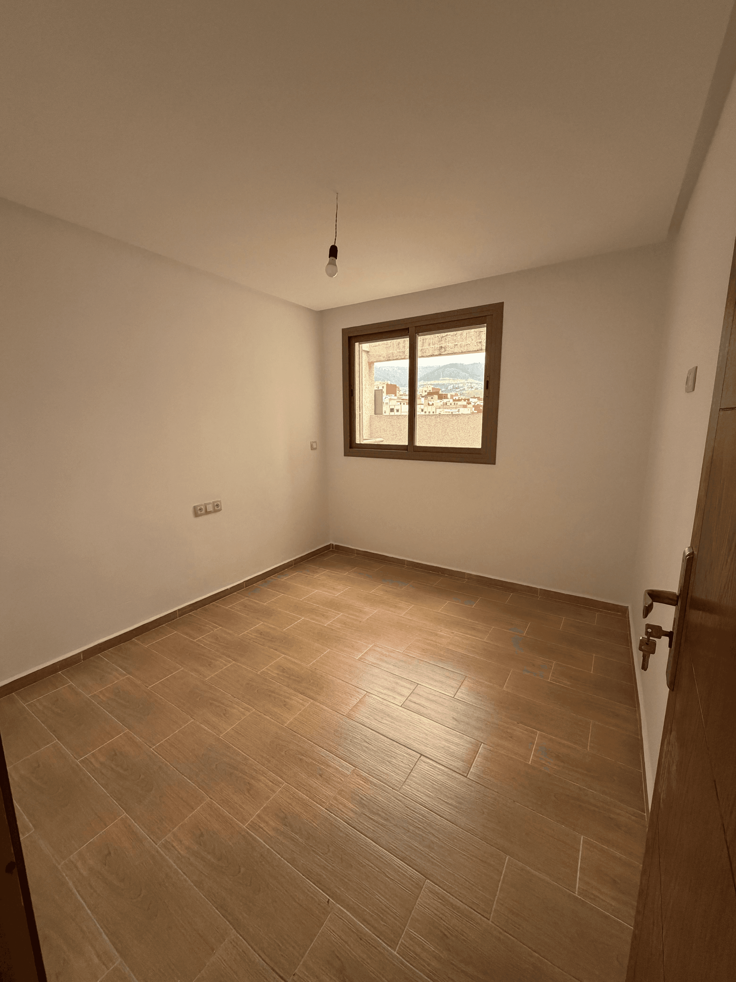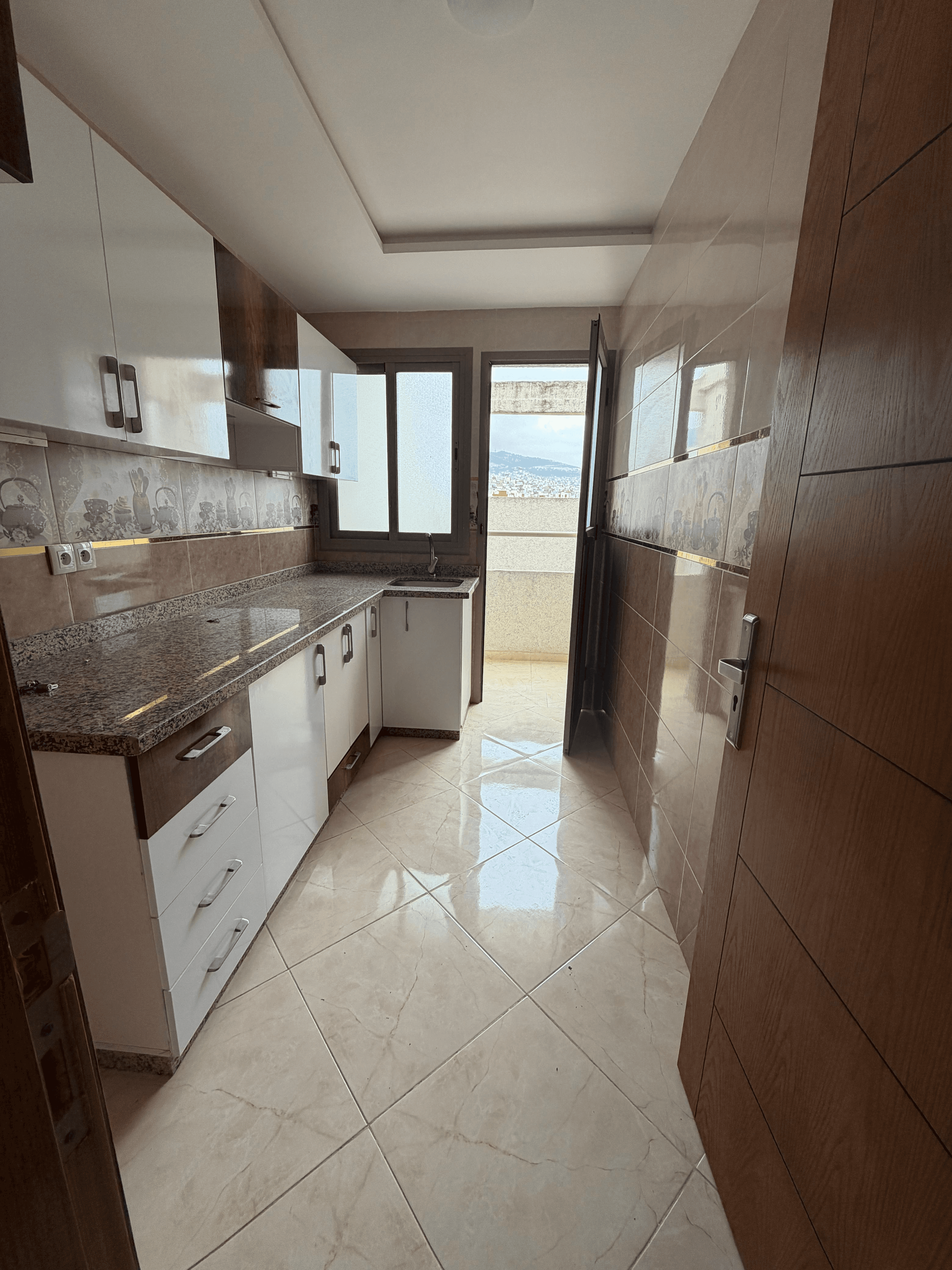 This beautiful 2-bedroom apartment is located on the 4th floor of the prestigious Residence Albaraka in east Tetouan. The property features one bathroom, a fully equipped kitchen, a comfortable living room, and a spacious terrace offering breathtaking mountain views. The terrace is the largest in the building, perfect for relaxing, entertaining, or enjoying the scenery. The apartment also includes a lift, high-speed fiber internet, and a parking spot available for sale. Residence Albaraka is a secure and well-maintained building with a mosque inside, a security guard, CCTV cameras, and a syndic, ensuring a safe and peaceful environment. The neighborhood of Wiqaya is clean, quiet, and family-friendly, with easy access to public transport, shops, and schools. This apartment combines comfort, convenience, and an exceptional view, making it an ideal choice for anyone seeking a premium home in Tetouan.